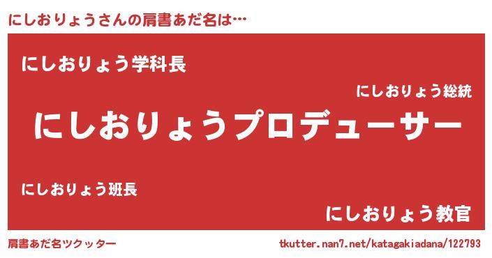 | ヘコむあだ名 | 『にしっちょ』『にしおりょう(苦笑)』 |