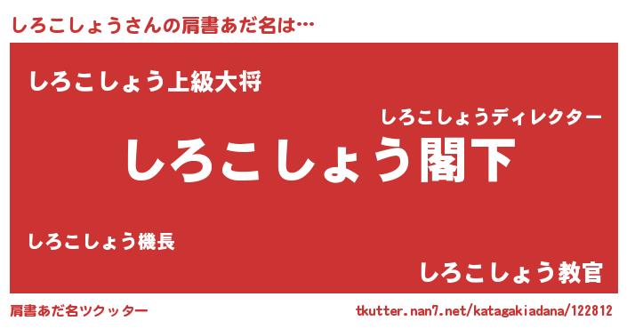 | 男性向けラノベタイトル風あだ名 | 『Re:しろこしょうから始める異世界生活』 |