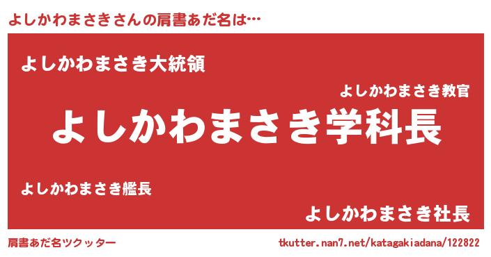 | 男性向けラノベタイトル風あだ名 | 『ノーゲーム・ノーヨシカワマサキ』 |