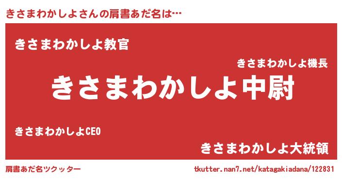 | ヒーロー風カッコイイあだ名 | 『仮面キサダー』『ネオキサマワカシヨ』 |