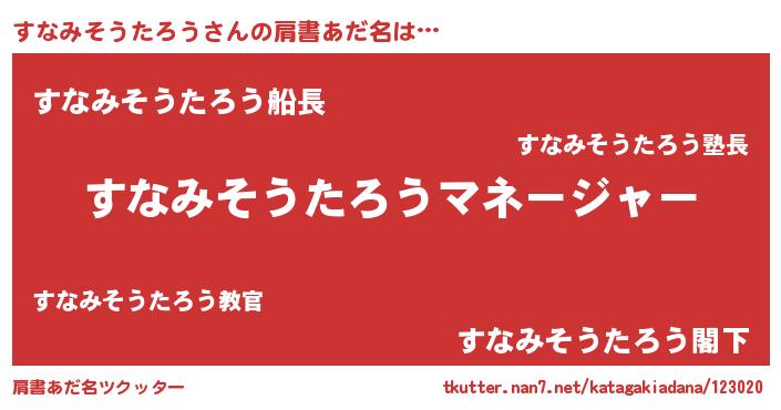 | ヒーロー風カッコイイあだ名 | 『ウルトラ戦士スナミソウタロウ』 |