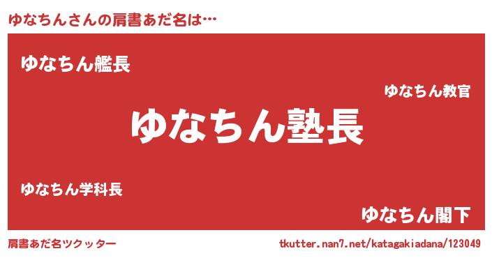 | 女子向けラノベタイトル風あだ名 | 『ゆなちんは平凡を望む』 |