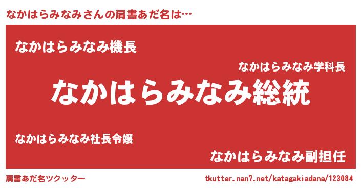| 意味不明あだ名 | 『自称なかはらみなみ』 |