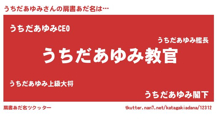 | 恥ずかしいあだ名 | 『プリティーうちだあゆみ』『うちっちょ』 |