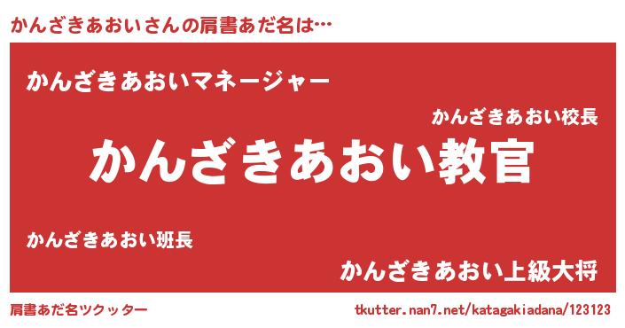 | 男性向けラノベタイトル風あだ名 | 『魔弾の王とかんざきあおい』 |