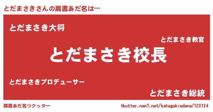 | 意味不明あだ名 | 『永久保存とだまさき』『自称とだまさき』 |