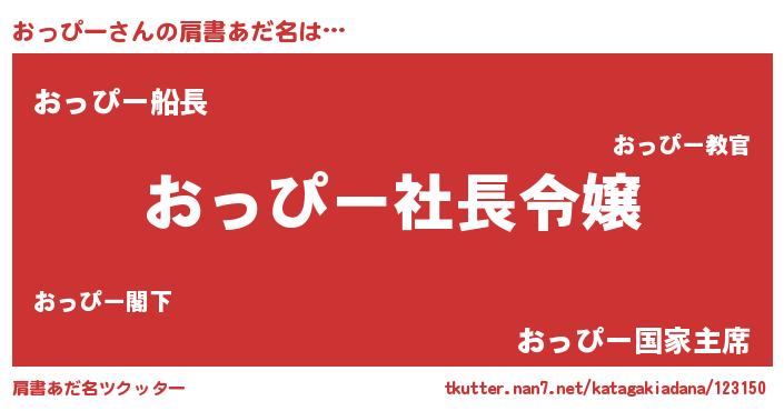 | 胡散臭い通販商品みたいなあだ名 | 『モテモテ間違いなし霊験あらたかなお札…その名も「おっぴー」』 |