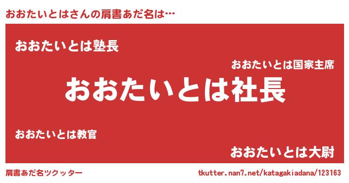 | 女子向けラノベタイトル風あだ名 | 『(仮)おおたいとはのやんごとなき事情』 |
