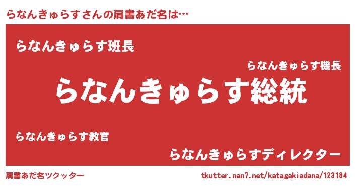 | 意味不明あだ名 | 『自称らなんきゅらす』 |