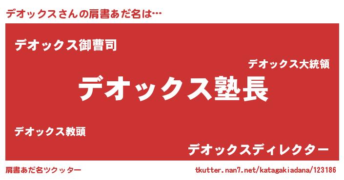 | 女子向けラノベタイトル風あだ名 | 『デオックス様がみてる』 |