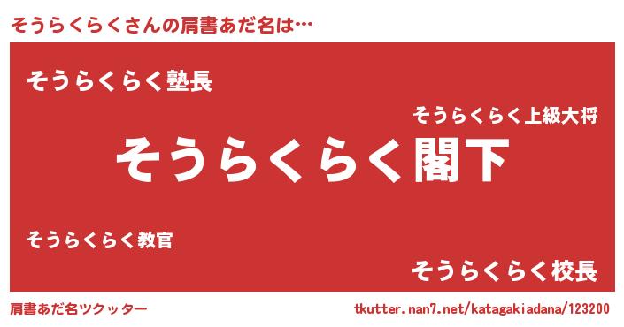 | 意味不明あだ名 | 『自称そうらくらく』 |