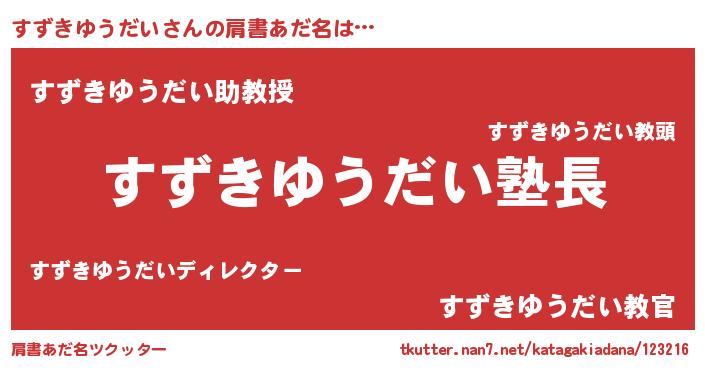 | 意味不明あだ名 | 『とにかく怪しいすずきゆうだい』 |