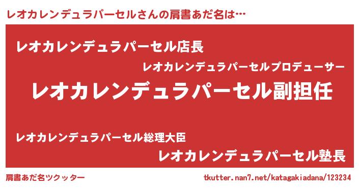 | 意味不明あだ名 | 『永久保存レオカレンデュラパーセル』 |
