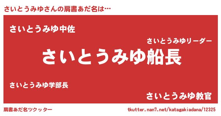 | 男性向けラノベタイトル風あだ名 | 『緋弾のサイトウミユ』 |