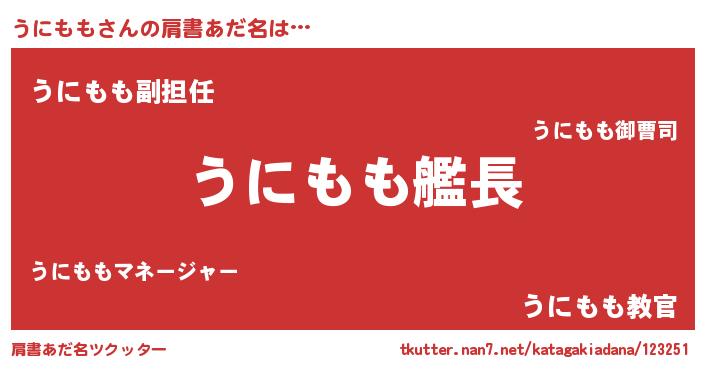 | 男性向けラノベタイトル風あだ名 | 『緋弾のウニモモ』『うにももの憂鬱』 |