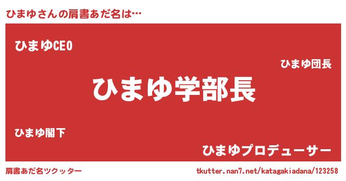 | ヒーロー風カッコイイあだ名 | 『正義の使者ひまゆ』『スーパーヒマユ』 |