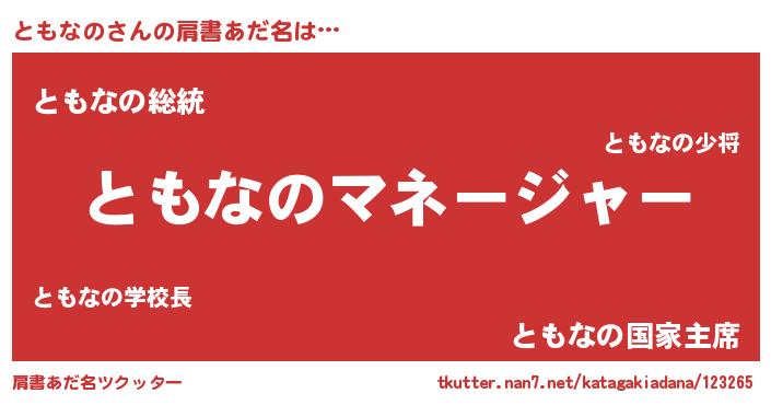 | 男性向けラノベタイトル風あだ名 | 『ともなのに滅ぼされるだけの簡単なお仕事です』 |