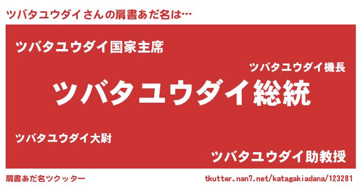 | ヒーロー風カッコイイあだ名 | 『ウルトラ戦士ツバタユウダイ』 |