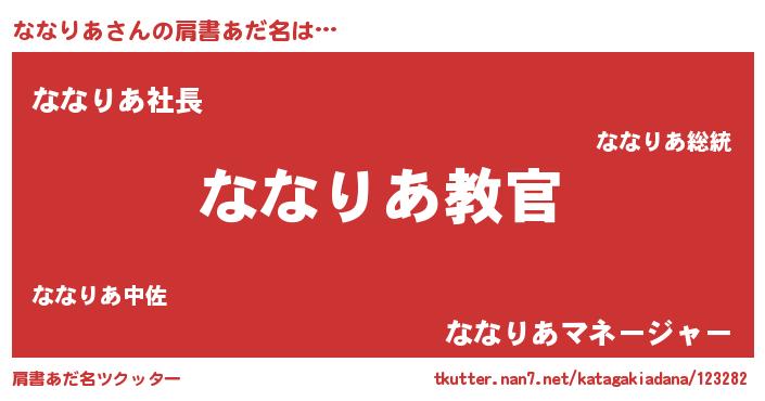 | 男性向けラノベタイトル風あだ名 | 『魔弾の王とななりあ』 |