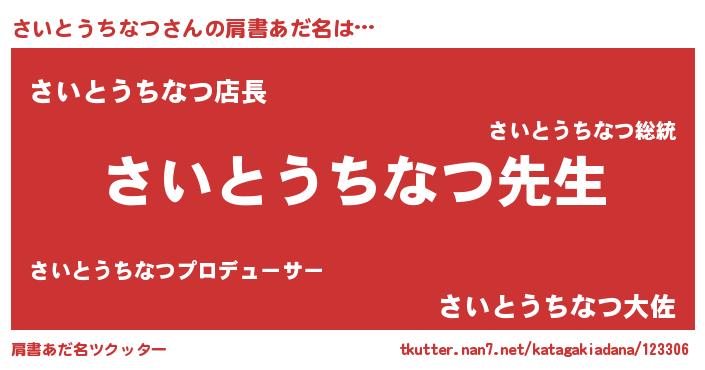 | ヘコむあだ名 | 『さいとうちなつ(笑)』『さいにゅー』 |