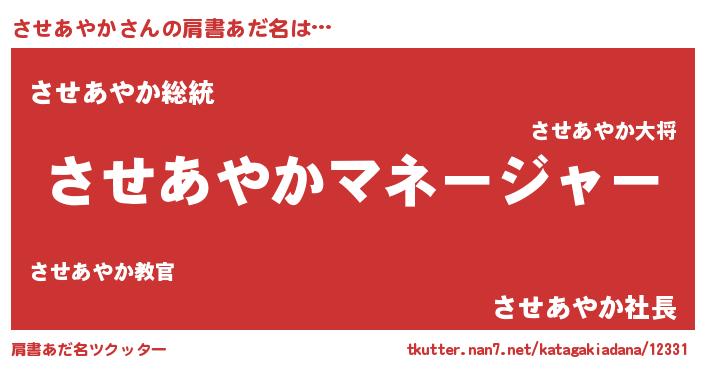 | ヒーロー風カッコイイあだ名 | 『超時空戦士サセアヤカ』『仮面サセダー』 |