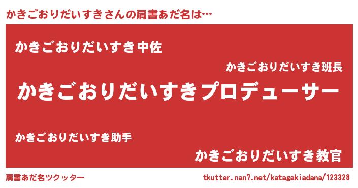 | 男性向けラノベタイトル風あだ名 | 『はたらくかきごおりだいすきさま!』 |