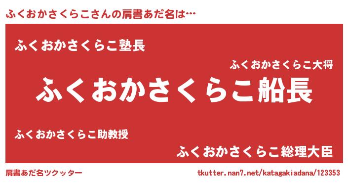 | 意味不明あだ名 | 『とにかく怪しいふくおかさくらこ』 |