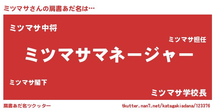 | 意味不明あだ名 | 『ヨモギ科ミツマサ属』『自称ミツマサ』 |