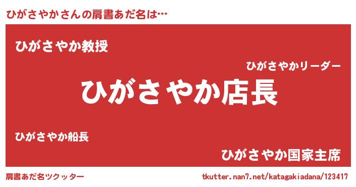 | 2回繰り返すあだ名 | 『ひがひが』『ぽんぽん』『ひひがが』 |