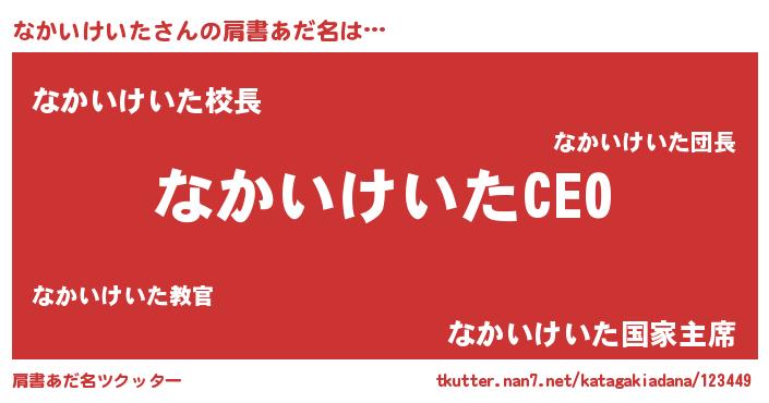 | 男性向けラノベタイトル風あだ名 | 『ナカイケイタアートオンライン』 |