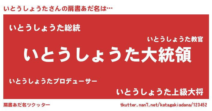 | 男性向けラノベタイトル風あだ名 | 『やはりいとうしょうたの青春ラブコメはまちがっている 』 |