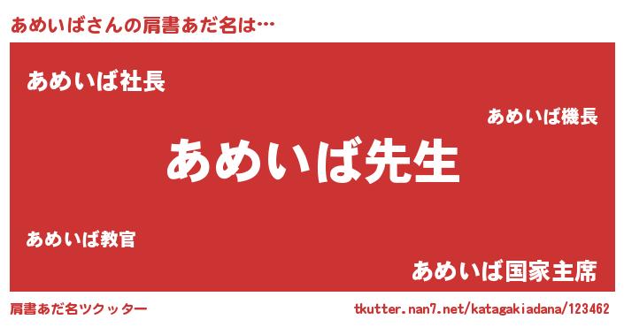 | ヘコむあだ名 | 『あめいば(笑)』『あめにー』 |