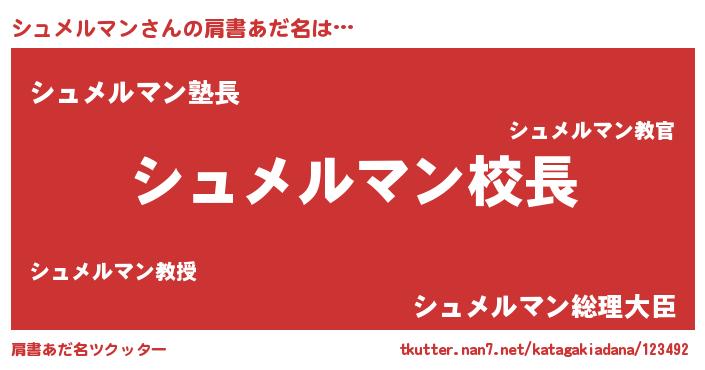 | 意味不明あだ名 | 『永久保存シュメルマン』 |