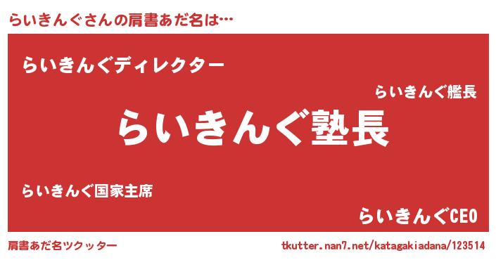 | 意味不明あだ名 | 『とにかく怪しいらいきんぐ』 |
