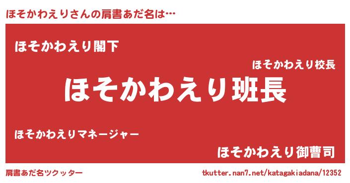 | ポケモン風あだ名 | 『ヒホソカワエリ』『ホソセウス』 |