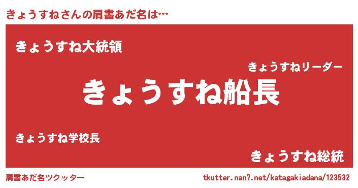 | 恥ずかしいあだ名 | 『きょっちょ』『キョウスネデラックス』 |