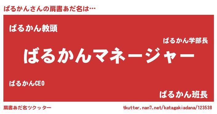 | ヘコむあだ名 | 『ばるかん(小並感)』『ばるを』 |