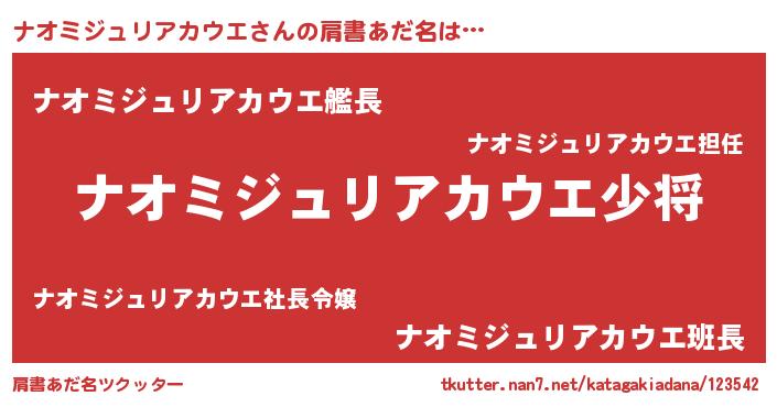 | 男性向けラノベタイトル風あだ名 | 『転生したらナオミジュリアカウエだった件』 |