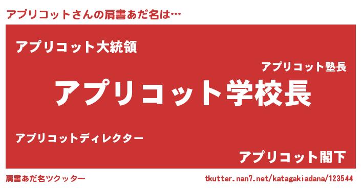 | ヒーロー風カッコイイあだ名 | 『慈愛の使者アプリコット』 |