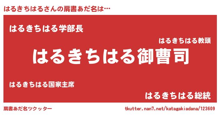 | 女子向けラノベタイトル風あだ名 | 『はるきちはる姫と円卓の騎士』 |
