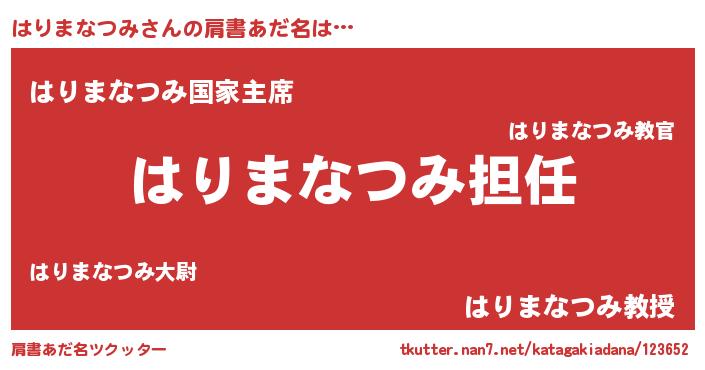 | 男性向けラノベタイトル風あだ名 | 『はりまなつみという概念が存在しない退屈な世界 』 |