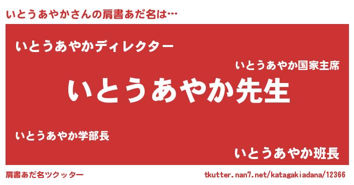 | ヘコむあだ名 | 『いとうあやか(小並感)』『いとっ子』 |