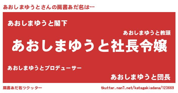 | 男性向けラノベタイトル風あだ名 | 『アオシマユウトアートオンライン』 |