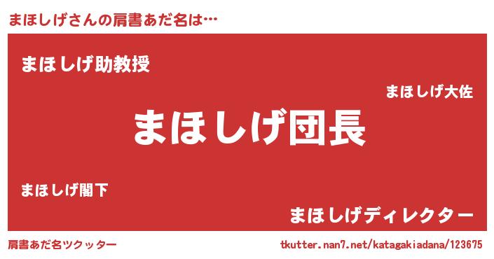 | 意味不明あだ名 | 『とにかく怪しいまほしげ』 |