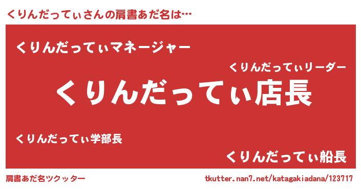 | 男性向けラノベタイトル風あだ名 | 『くりんだってぃの憂鬱』 |