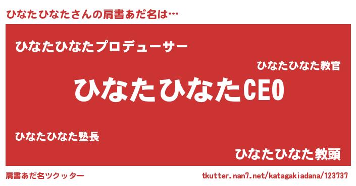 | ヒーロー風カッコイイあだ名 | 『スーパーヒナタヒナタ』『仮面ヒナダー』 |