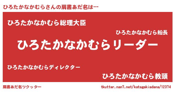 | 男性向けラノベタイトル風あだ名 | 『ダンジョンにひろたかなかむらを求めるのは間違っているだろうか』 |