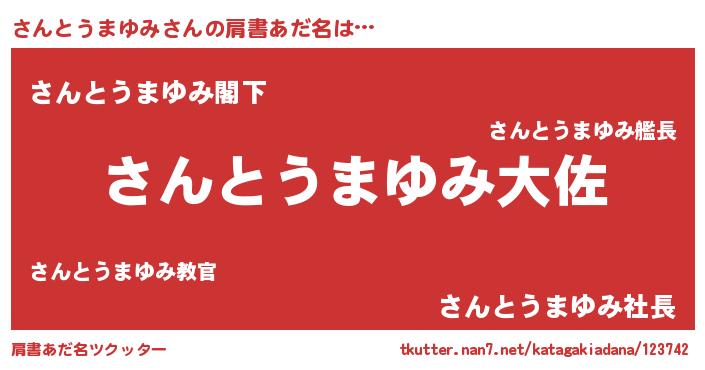 | 男性向けラノベタイトル風あだ名 | 『転生したらさんとうまゆみだった件』 |