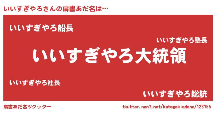 | 女子向けラノベタイトル風あだ名 | 『いいすぎやろの雑貨屋さん』 |