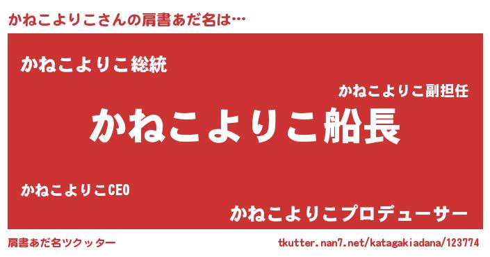 | ヘコむあだ名 | 『かねこよりこ(小並感)』『かねにゅー』 |